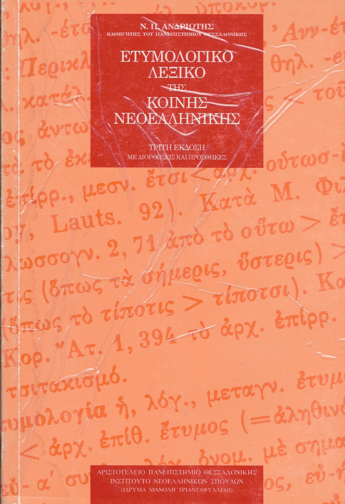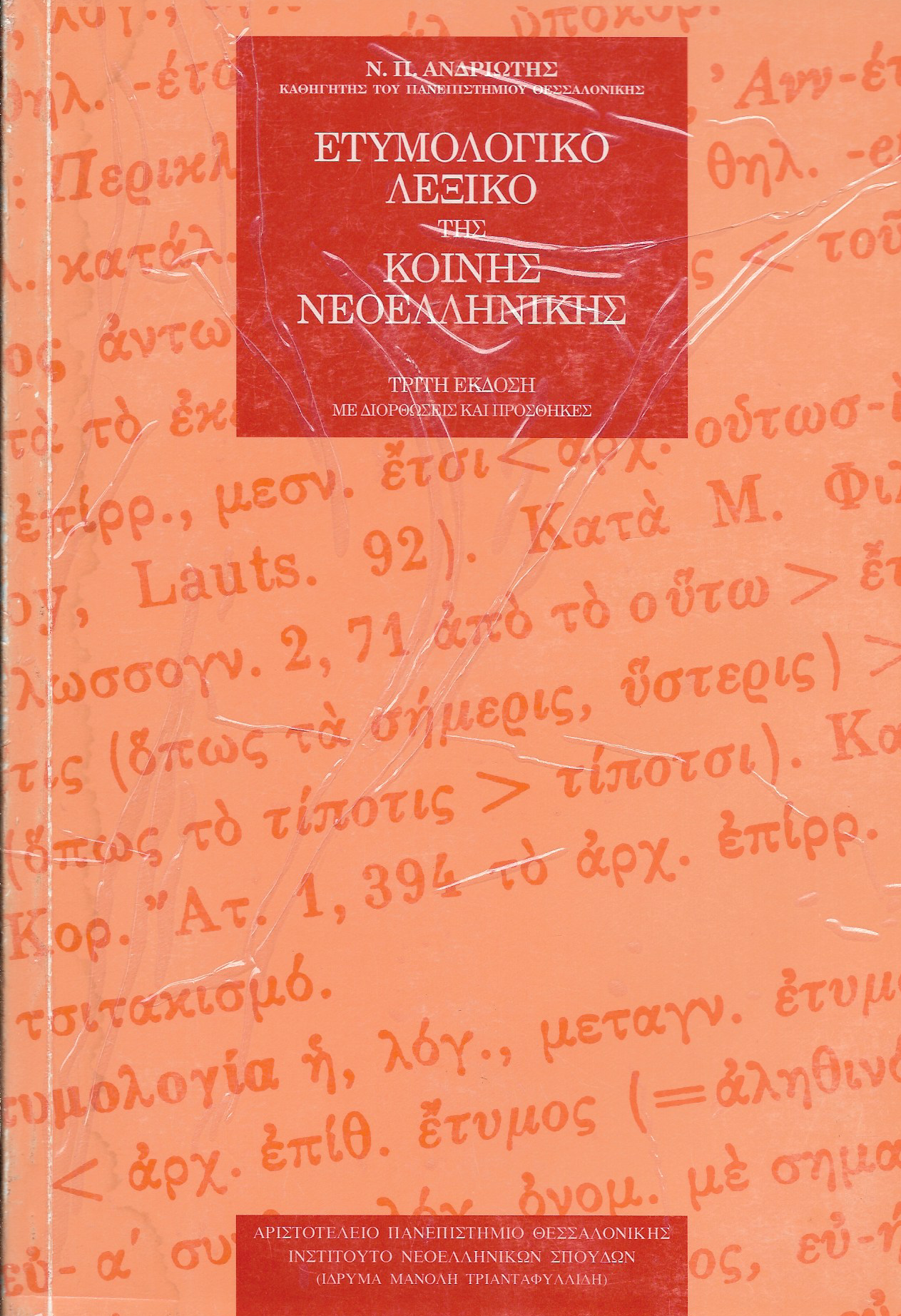 Ν.Π. ΑΝΔΡΙΩΤΗ – » Ετυμολογικό λεξικό της κοινής Νεοελληνικής ».