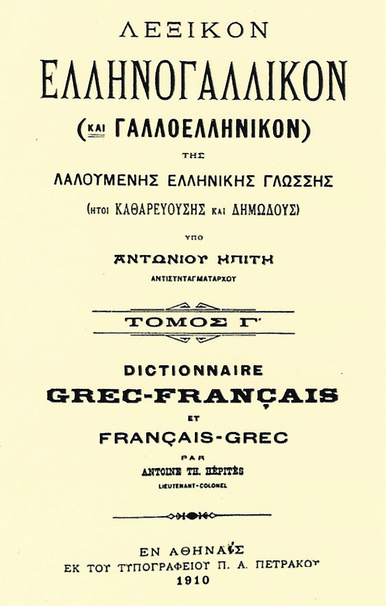 ΑΝΤ. HΠΙΤΗ – » Λεξικόν Ελληνο-Γαλλικόν & Γαλλο-Ελληνικόν ».