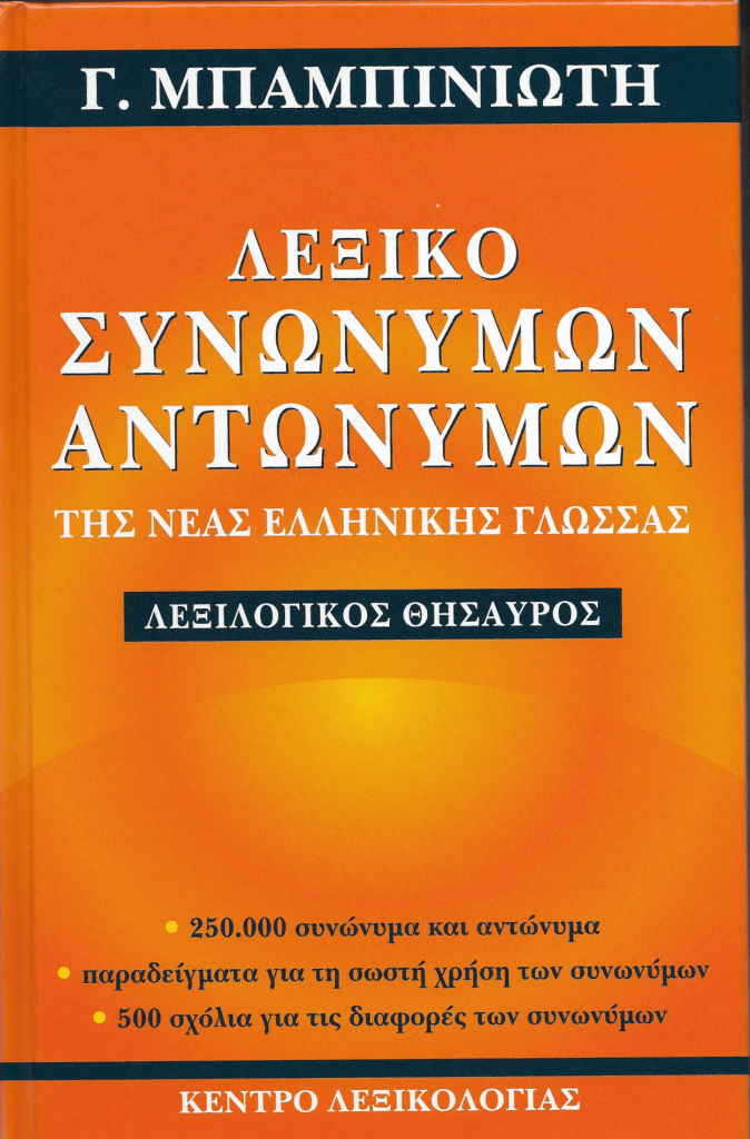Γ.ΜΠΑΜΠΙΝΙΩΤΗ – » Λεξικό Συνωνύμων & Αντωνύμων της Νέας Ελληνικής γλώσσας ».
