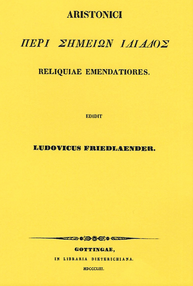 ΑΡΙΣΤΟΝΙΚΟΥ – » Περί σημείων Ηλιάδος », { εις την ραψ. Η’ }.