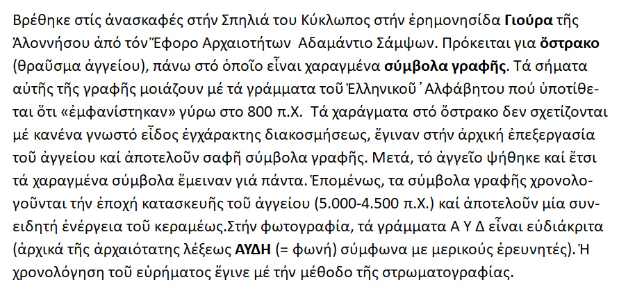 Επιγραφή Σποράδων – Γιούρα τῆς Αλοννήσου [ 5.000-4.500 л.X. ].