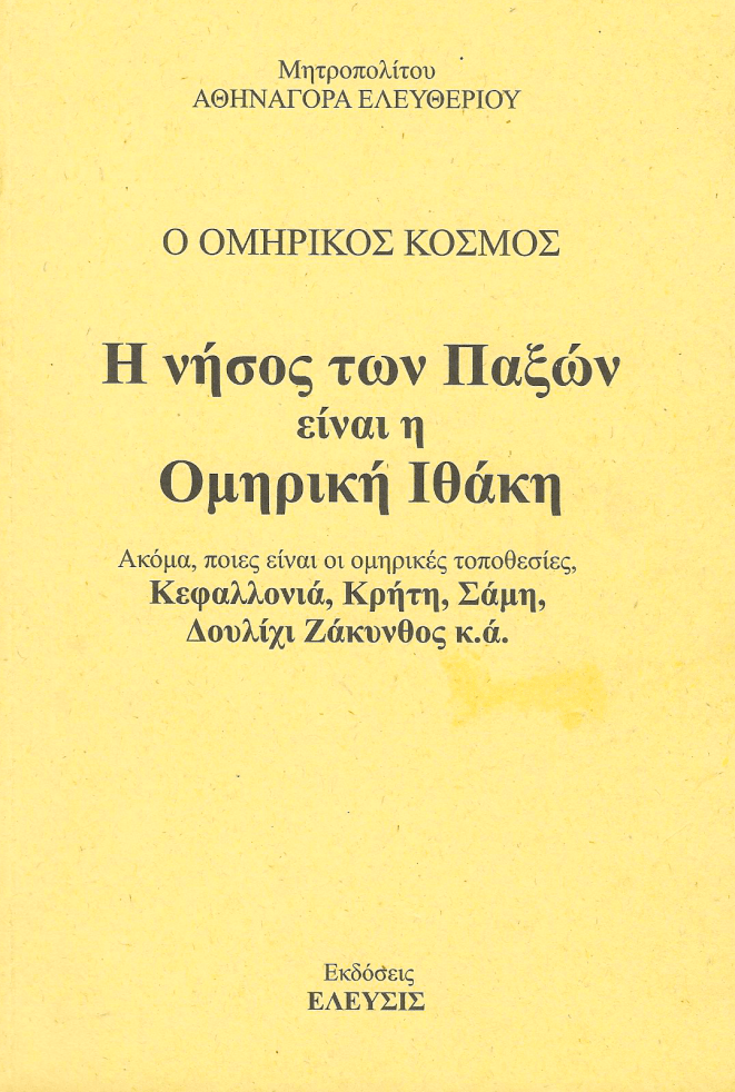 Μητρ. ΑΘΗΝΑΓΟΡΑ [ ΕΛΕΥΘΕΡΙΟΥ ] – » Η νήσος των Παξών είναι η Ομηρική Ιθάκη », { σελ.78-79 }.