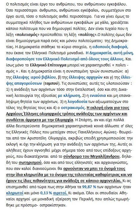 < Η ΕΛΛΑΣ : Της οφείλουμε τα πάντα Αλφάβητον, δίκαιον, δημοκρατία, θέατρον, αθλητισμόν, φιλοσοφία, μαθηματικά, ιατρική, ηθική, αστρονομία, τέχνη…>>