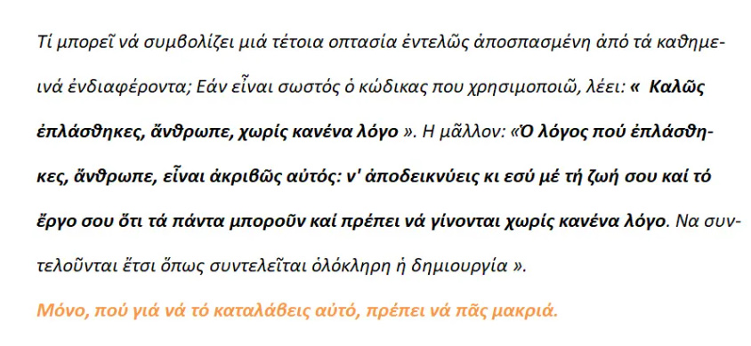 »Στην αντίληψη του καλλιτέχνη ο αγώνας για τη σωτηρία του ανθρώπου είναι αγώνας για την ορθή έκφραση ,και τίποτε άλλο ».